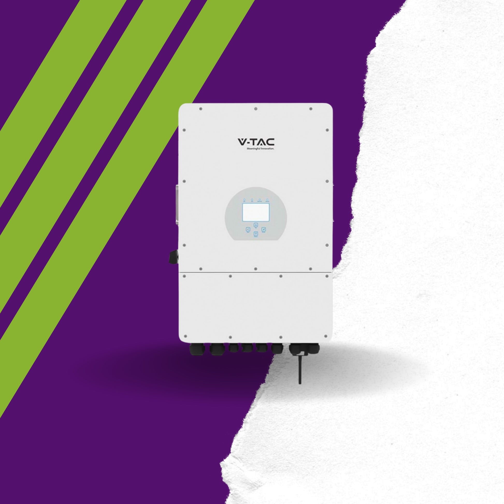 Μονοφασικό Υβριδικό On/Off-Grid Inverter 5KW με οθόνη LCD IP65 11547 V-TAC. Ένας Grid Tie Inverter είναι ένας μετατροπέας ρεύματος που μετατρέπει το συνεχές ρεύμα (DC) σε εναλλασσόμενο ρεύμα (AC) με δυνατότητα συγχρονισμού για τη διασύνδεση με μια γραμμή παροχής. Οι εφαρμογές του μετατρέπουν DC πηγές, όπως ηλιακούς συλλέκτες ή μικρές ανεμογεννήτριες σε εναλλασσόμενο για να συνδεθεί με το δίκτυο.