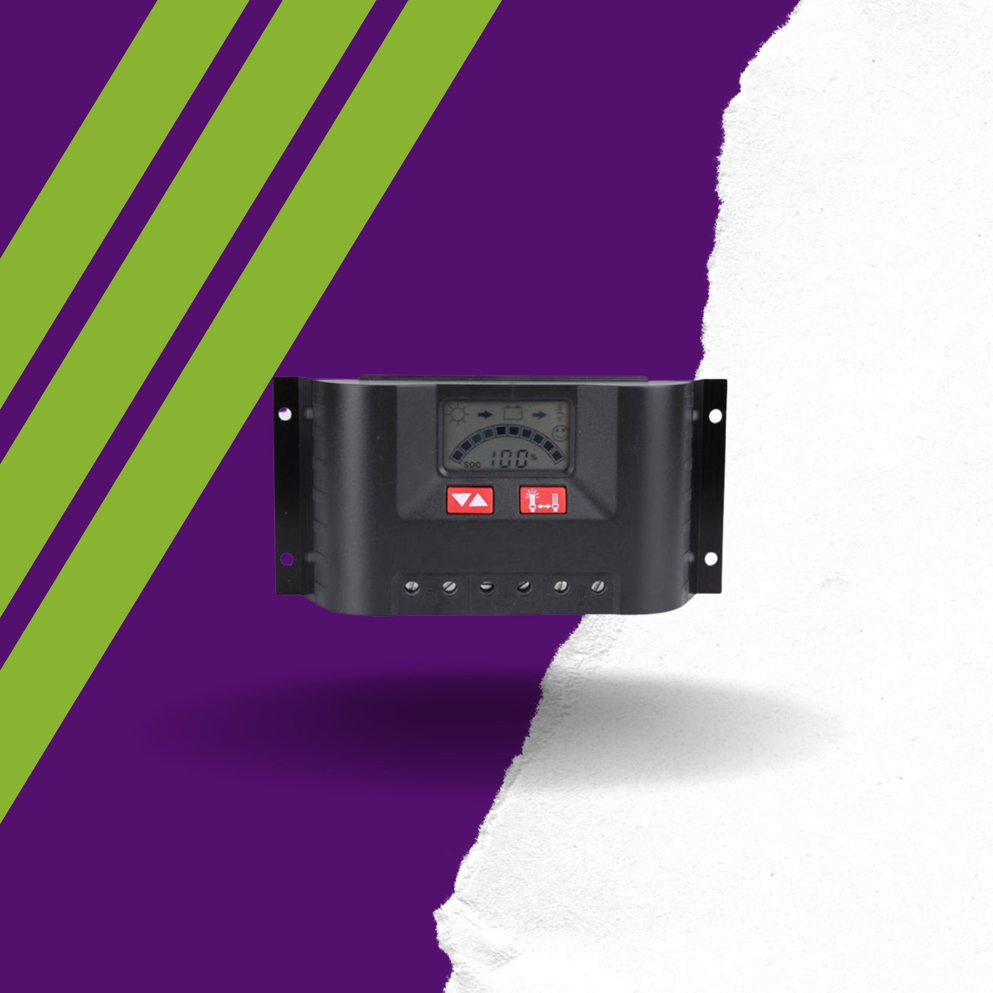 Ηλιακός Ρυθμιστής Μπαταριών για Φωτοβολταϊκά Συστήματα με μία μεγάλη οθόνη που πληροφορεί το χρήστη για τις λειτουργίες της συσκευής με τη χρήση συμβόλων. Η κατάσταση της φόρτισης αναπαριστάται οπτικά με ένδειξη διαβάθμισης και ποσοστό επί τοις 100 %. Πληροφορίες όπως τα βολτ και τα αμπέρ εμφανίζονται με τη μορφή ψηφιακών αριθμών. Επιπλέον, ο ελεγκτής διαθέτει μετρητή ενέργειας, ο οποίος μπορεί να επαναφερθεί από το χρήστη. Αποτελεί σημαντικό κομμάτι ενός Φωτοβολταϊκού Συστήματος.